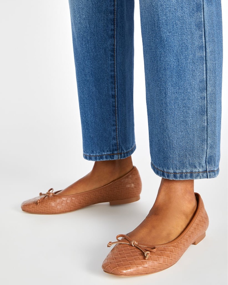 These charming camel ballet flats are perfect for a summer garden party or a romantic date night. The delicate details create a feminine and sophisticated look.