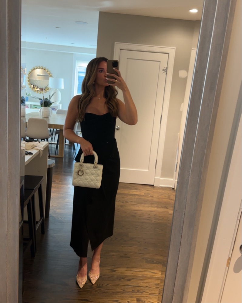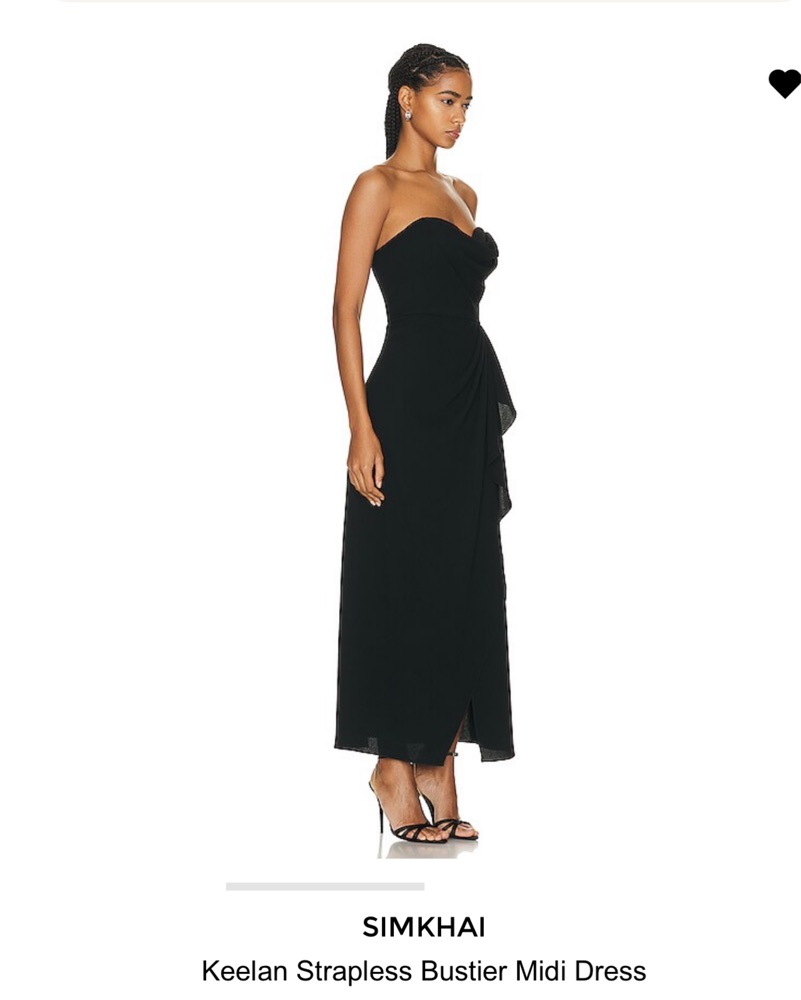 This elegant strapless midi dress is perfect for a formal event or night out. The figure-flattering silhouette and luxurious black fabric create a sophisticated look. Worn once in great condition!