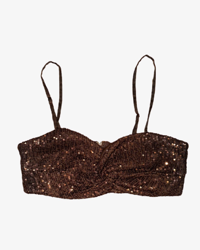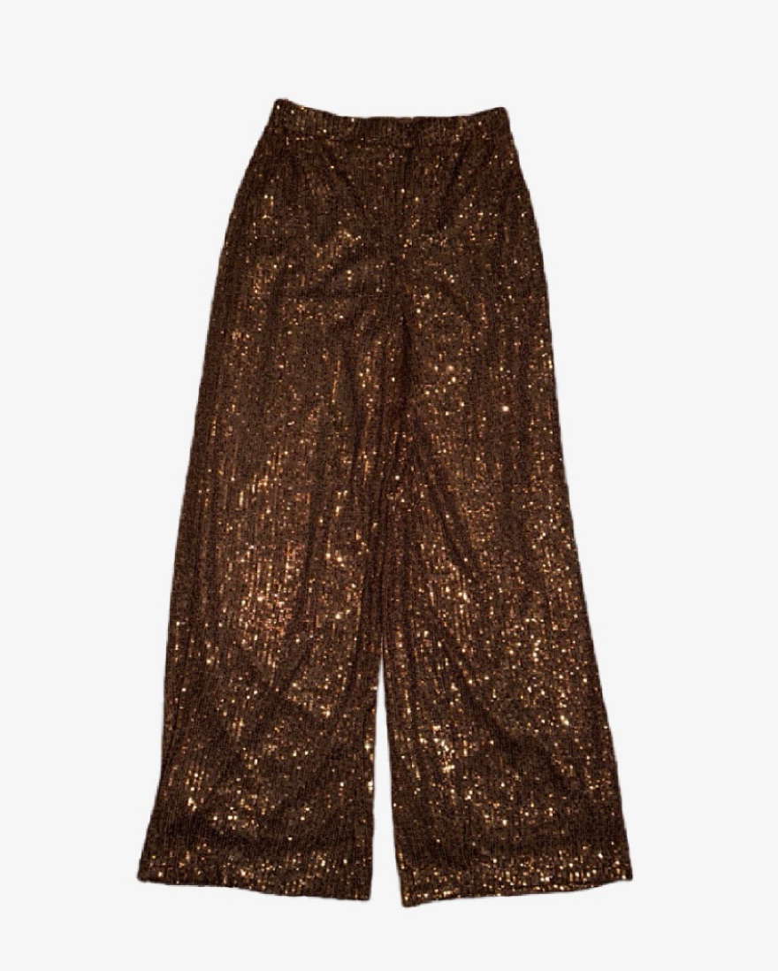 Brown Sequin Bra Top And Flare Pants