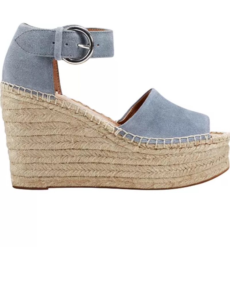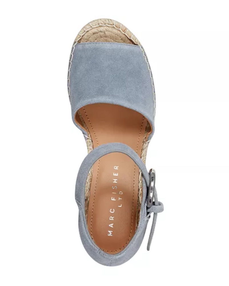 Marc Fisher LTD Alida High Platform Espadrille Wedge Sandals in light blue. light fraying on one of the buckles, but still super cute and functional. Comfortable and easy to walk in.