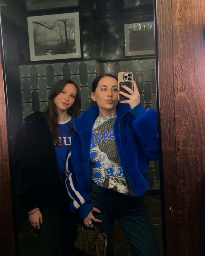Blue fur cropped jacket - perfect for Knicks games or sporting events!