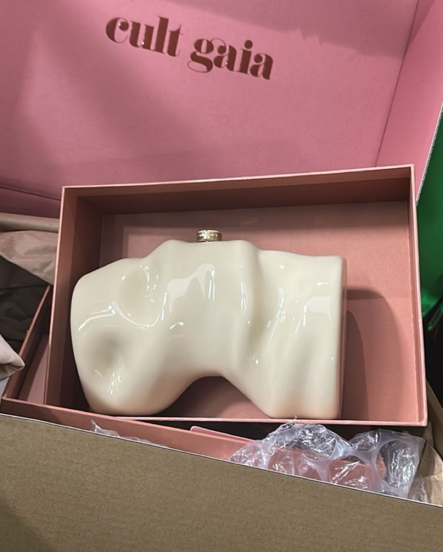 Such a cute and unique clutch that can elevate any outfit! Please be careful if renting, as it is very fragile.