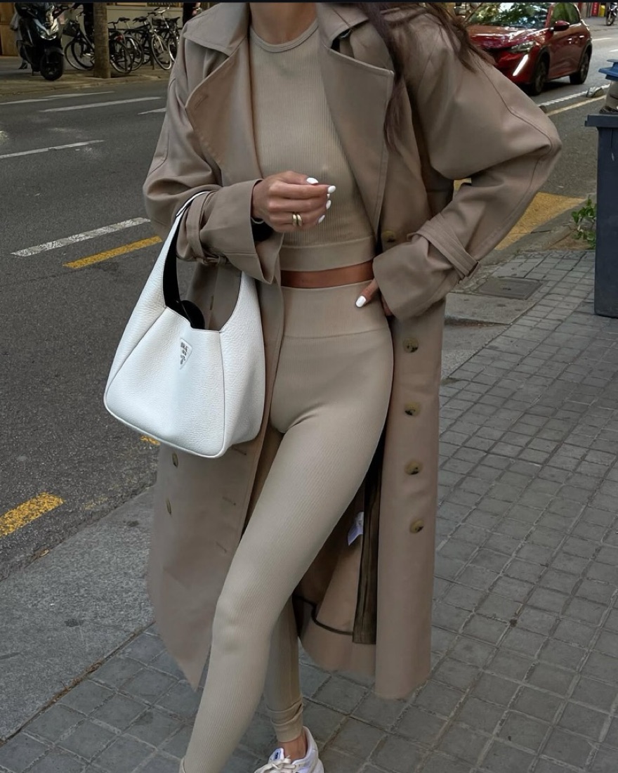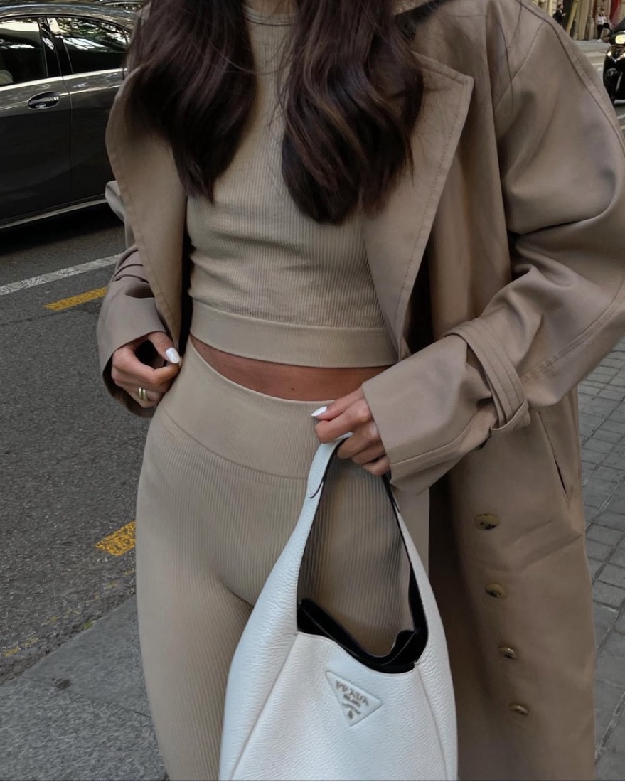 Worn once. Ribbed athletic set in color Safari. Long-sleeved top with bottoms. This specialty set would be perfect for a Safari, Utah hiking trips, Iceland.