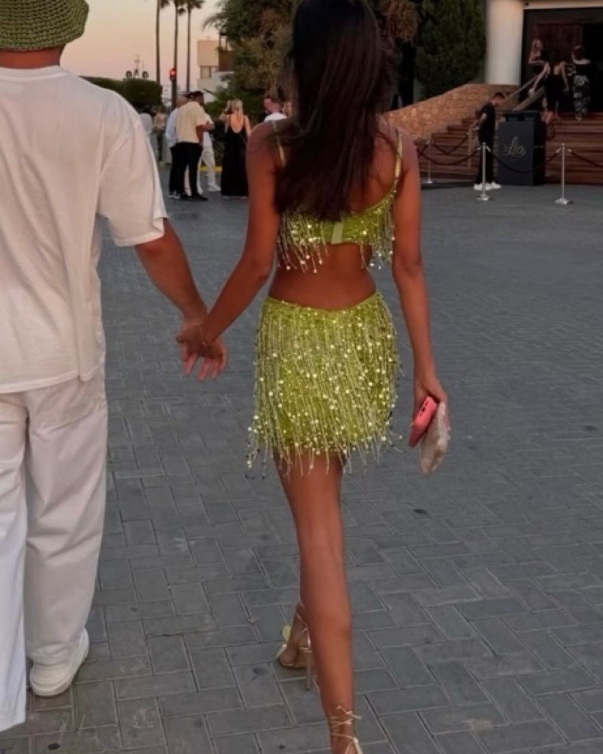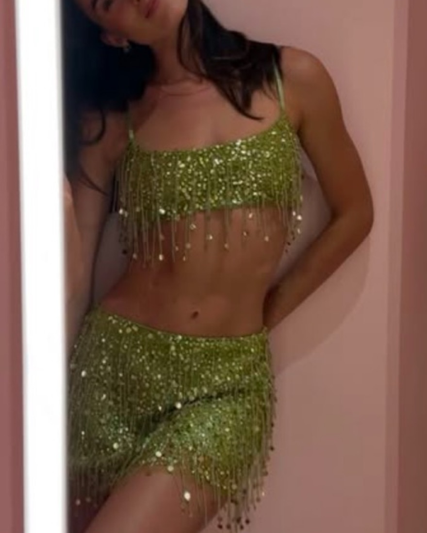 asta resort Yasmin Hand Beaded Mini Skirt & matching bra top in size small for both