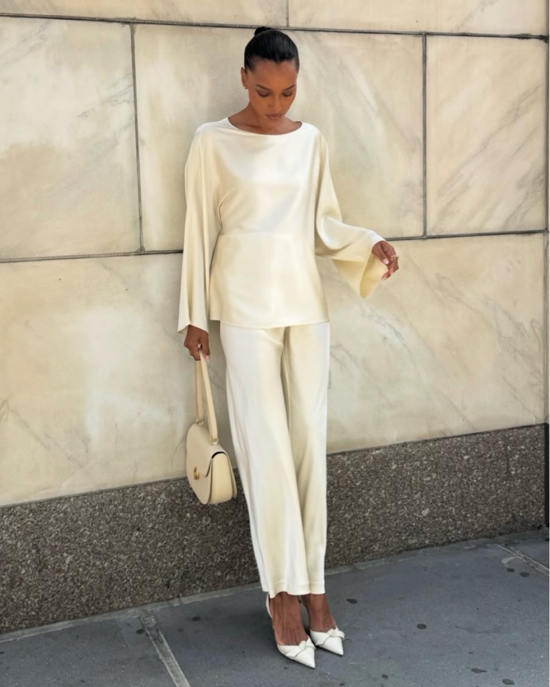 So stunning on - this is a 2 piece set, pure silk blouse & bias cut silk pants! Set retails for $588. Pants size 2 (elastic band so could fit 0-4) top size small. As seen on jasmine Tookes. perfect for night out, wedding bachelorette, trips, etc. tagged for exposure as the brands not on pickle!