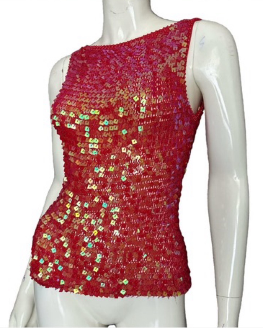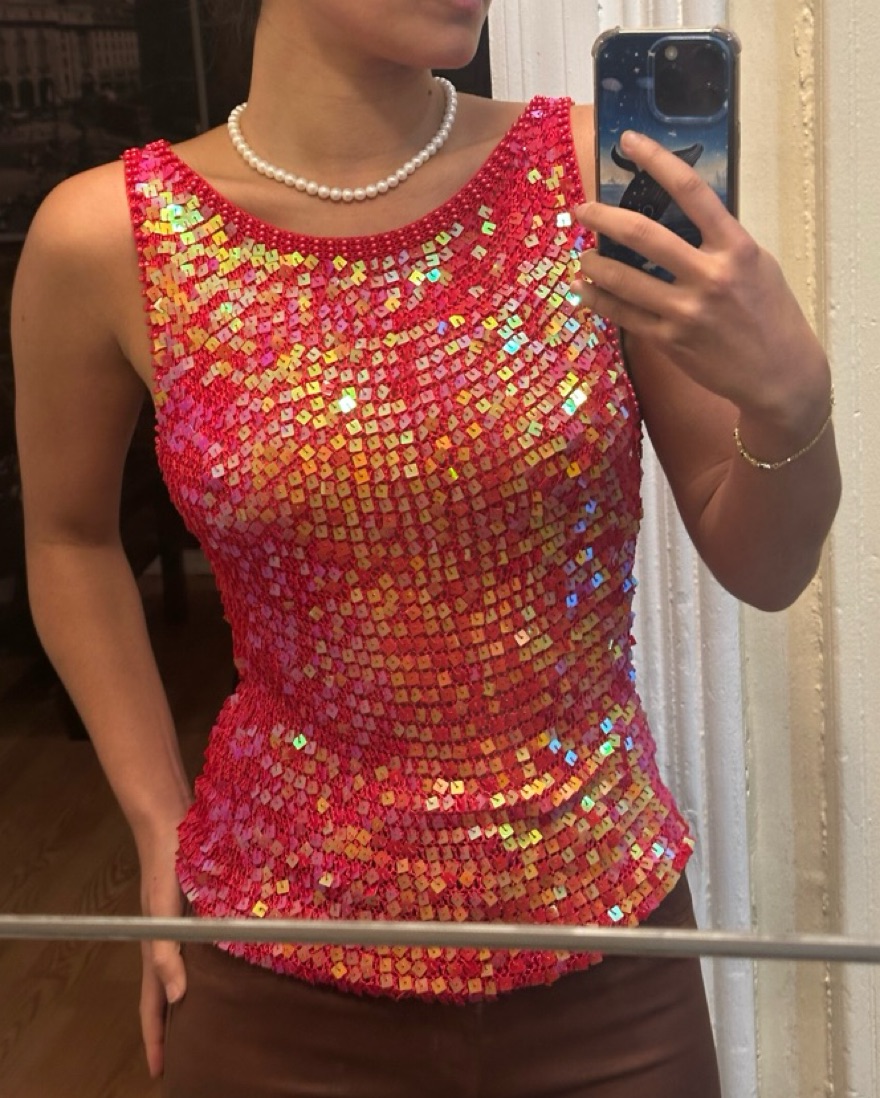 This eye-catching sleeveless top is perfect for a night out! Please be careful because it snags. Perfect Mermaidcore vibes for summer vacation. Tags: Going out, summer, sequin, sparkly, tops