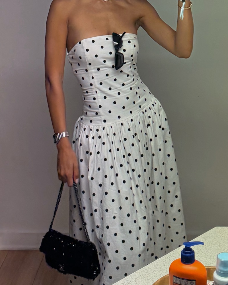 Peppermayo polka dot strapless maxi