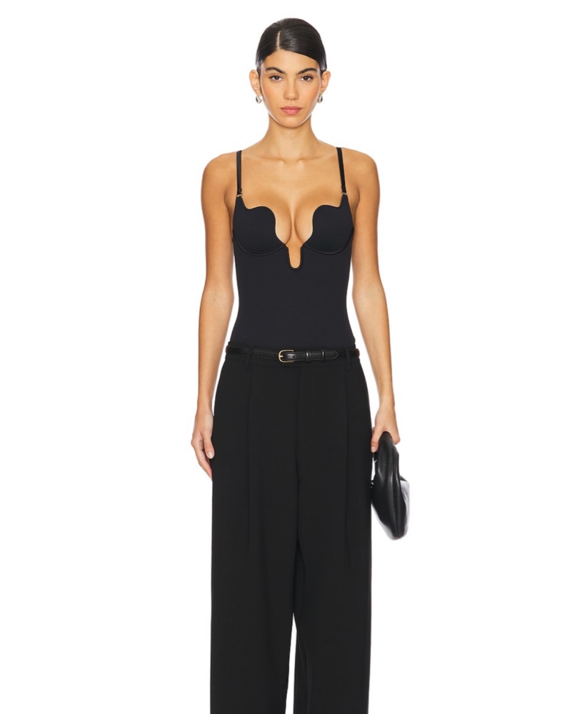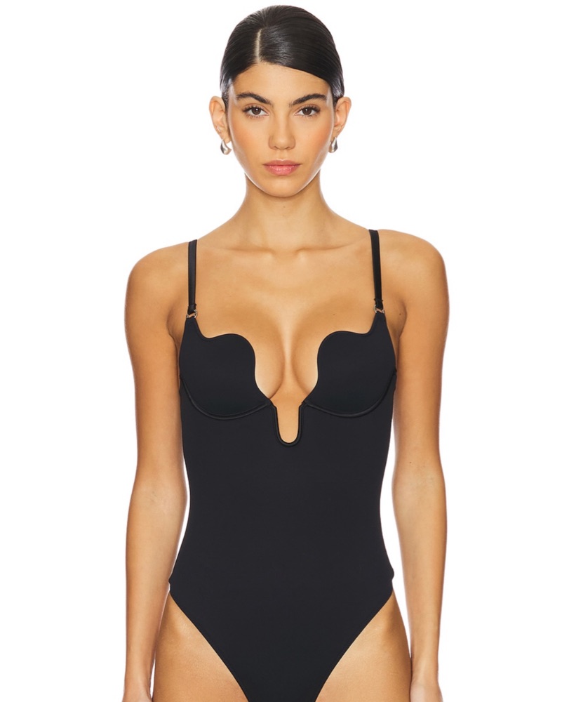 Le stretch Micro U Plunge Bodysuit by Fleur Du Mal - Pickle