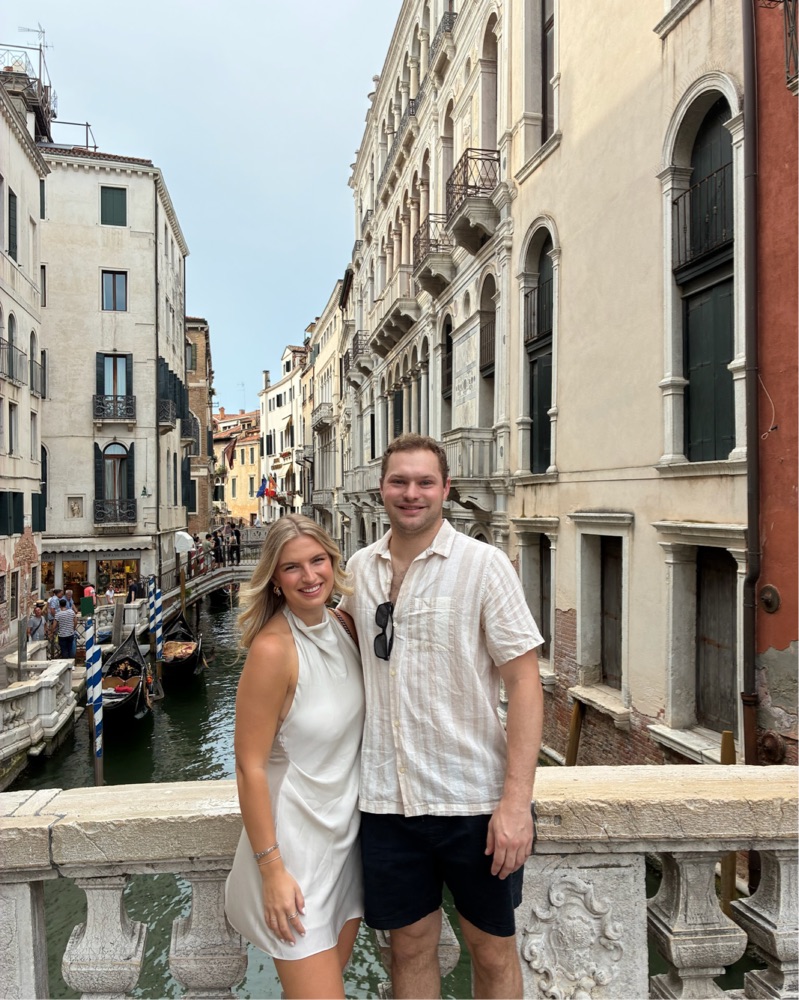 Mini dress in pearl white, low back & high neck! Super cute and perfect for brides