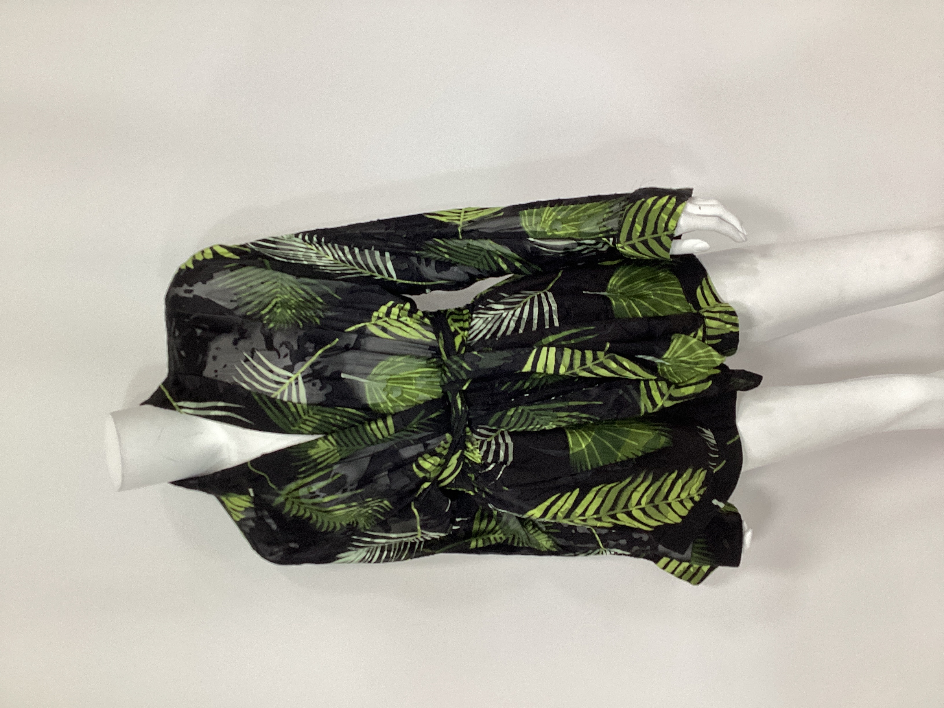 Tropical print meets effortless style in this versatile piece. Perfect for vacation, brunch, or summer events. Flattering romper silhouette with a playful palm pattern.