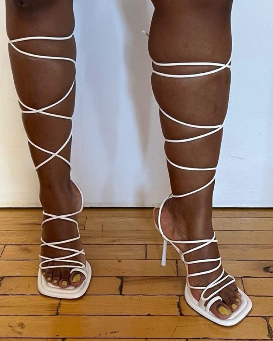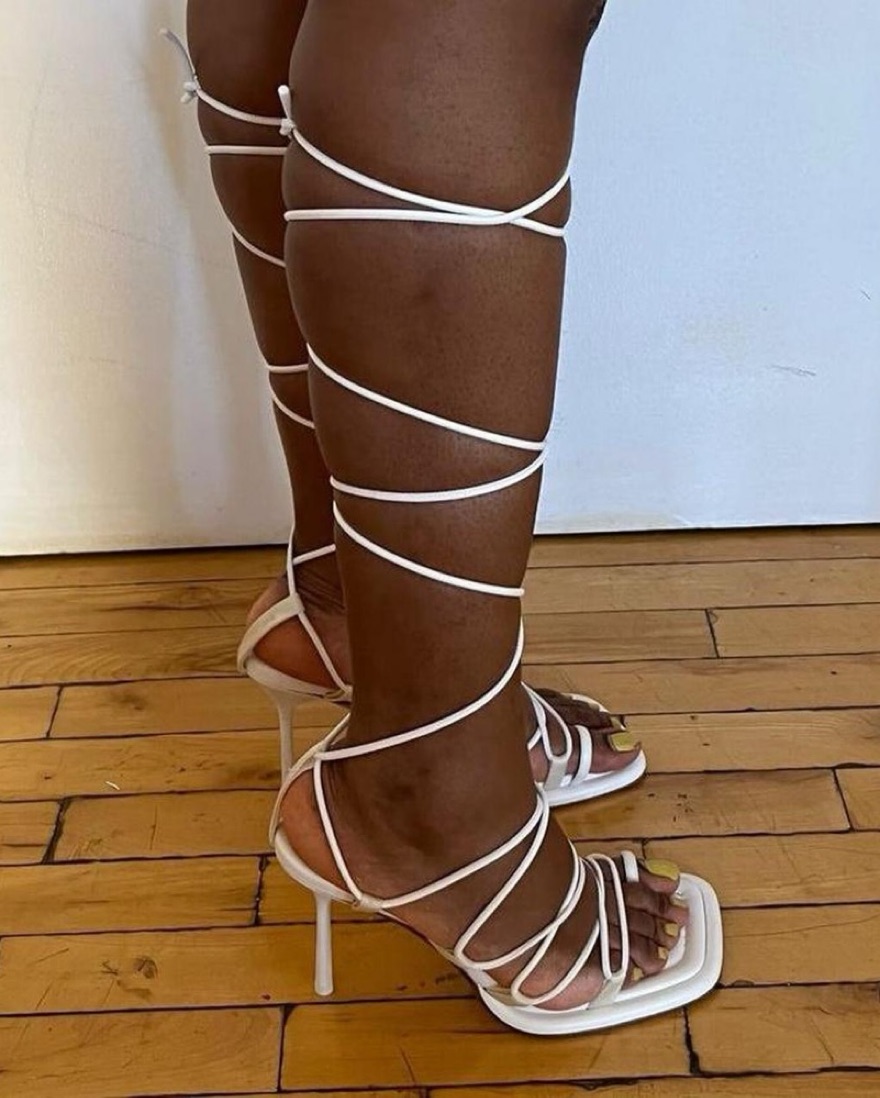 Elevate your look with these stylish strappy lace-up sandals. Perfect for a night out or special occasion.