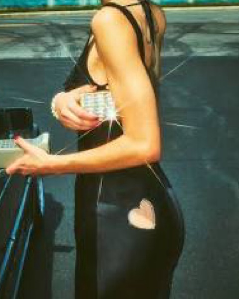 This gem of a dress fits like heaven! The breast area is sheer with the nips covered by adorable sequins and the heart rhinestone accent on the booty is HOT.