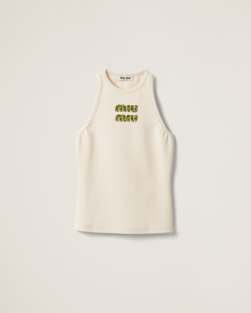 Miu Miu Ribbed jersey top with embroider
