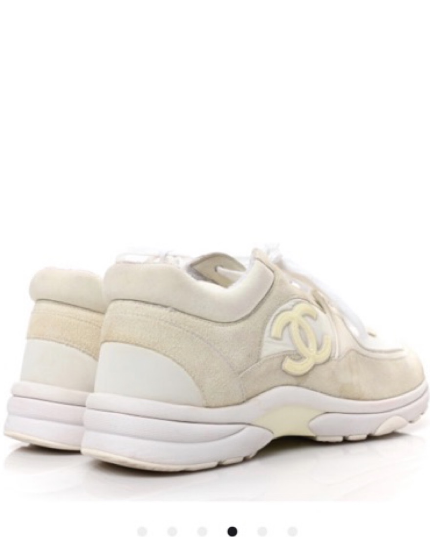 Chanel Suede Calfskin CC White Sneakers