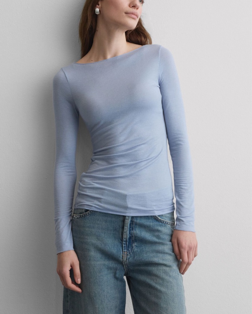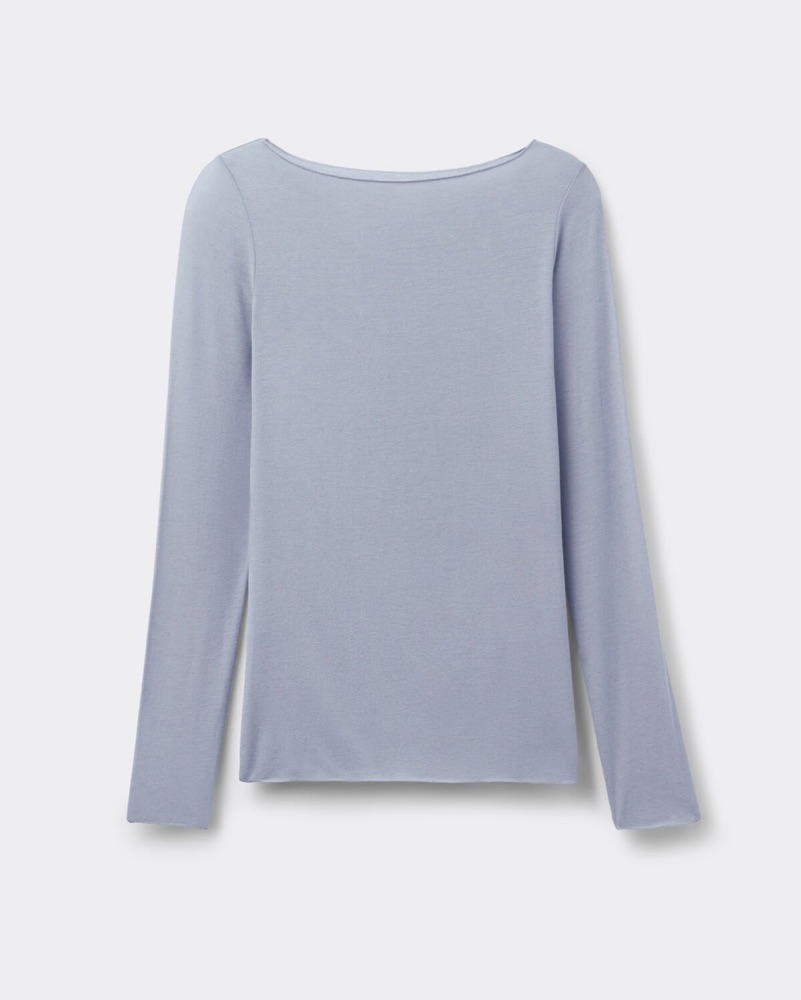 Crafted from ultralight modal and cashmere, this sheer boat neck top offers an incredibly soft and breathable feel, making it ideal for layering or wearing on its own. The elegant boat neckline frames the shoulders. The ultralight material’s sheer nature gives it a delicate and refined look.