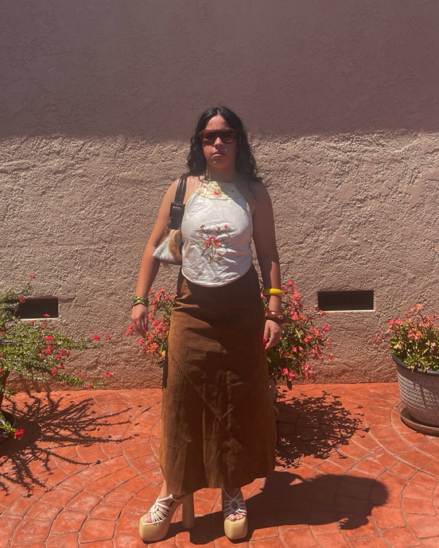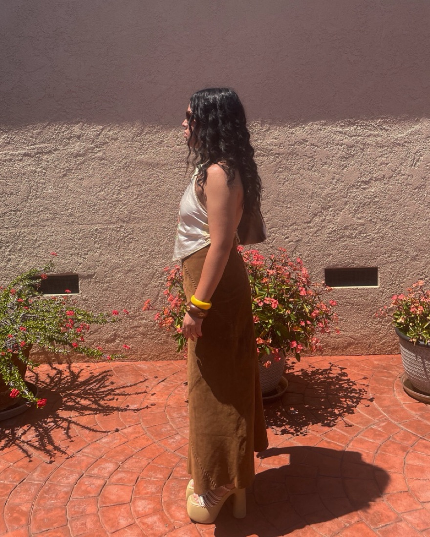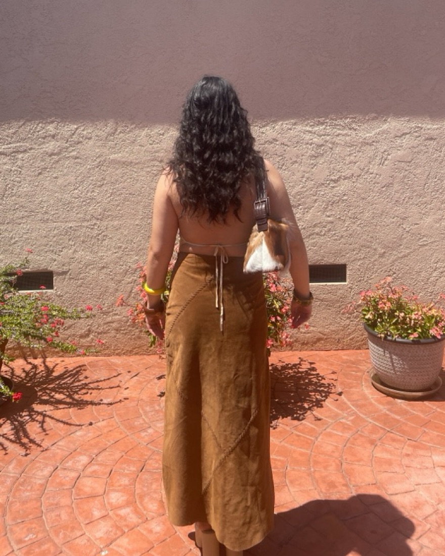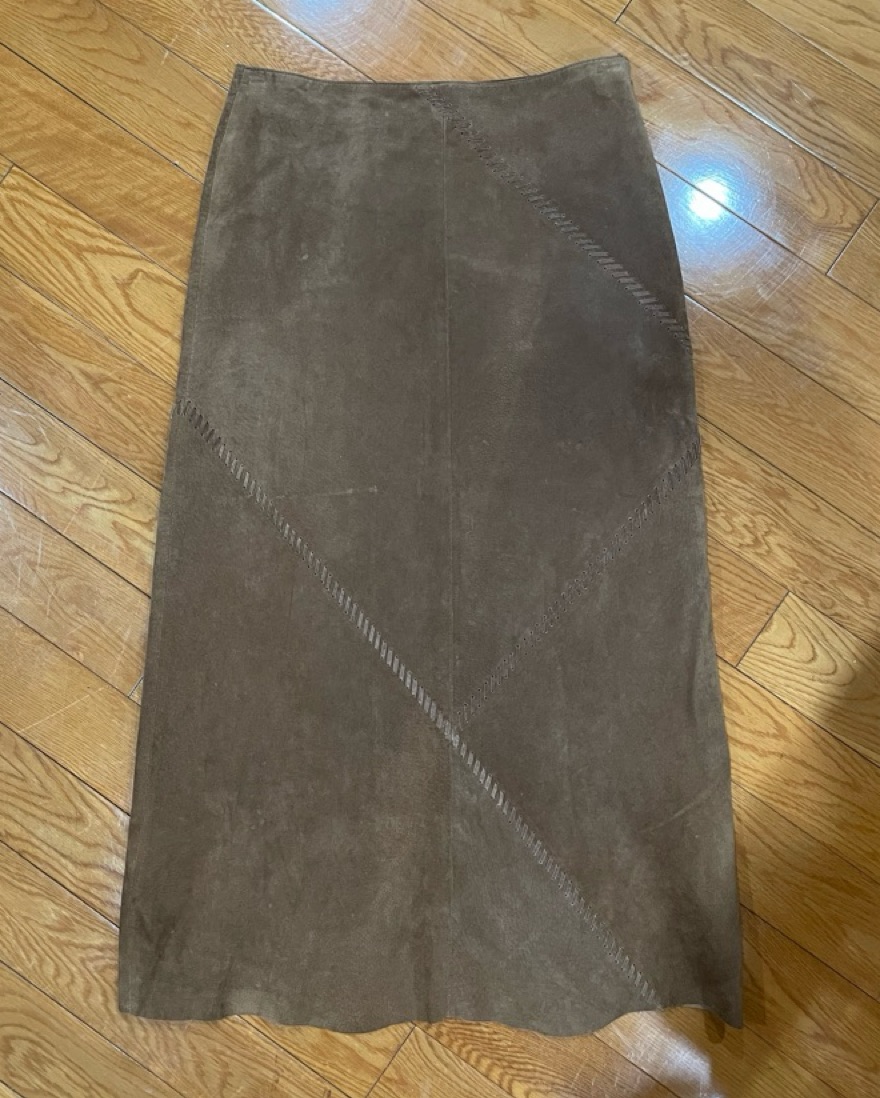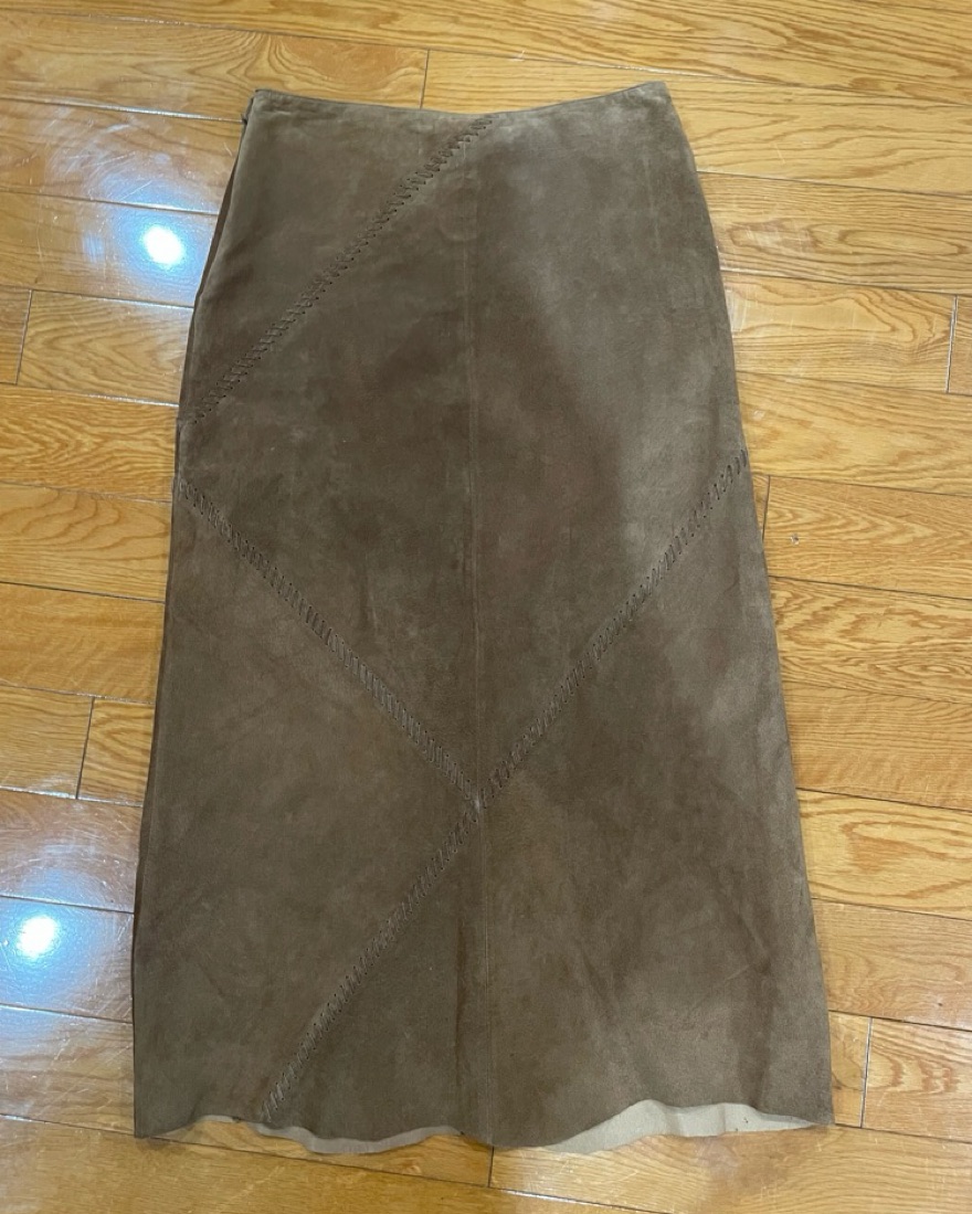 Vibtage brown suede leather maxi skirt, fits like a size 8