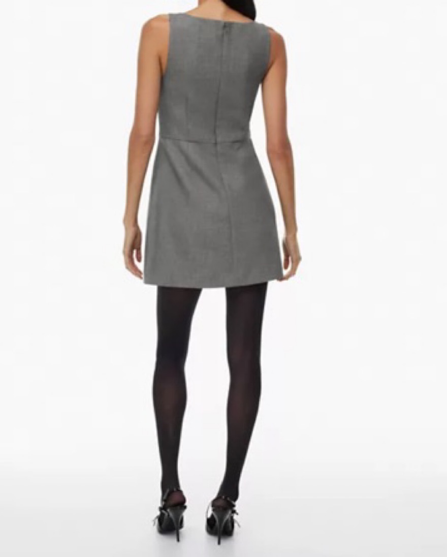 Black mini dress with discreet pockets. Very flattering and comfortable dress.
