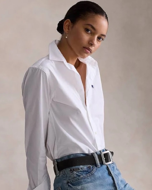Great for US open fits, dress up or down with a midi skirt, jeans or shorts. This timeless look is perfect for a variety of occasions, from casual weekend outings to more dressed-up events. The crisp white button-up and relaxed denim provide a sophisticated yet effortless style.