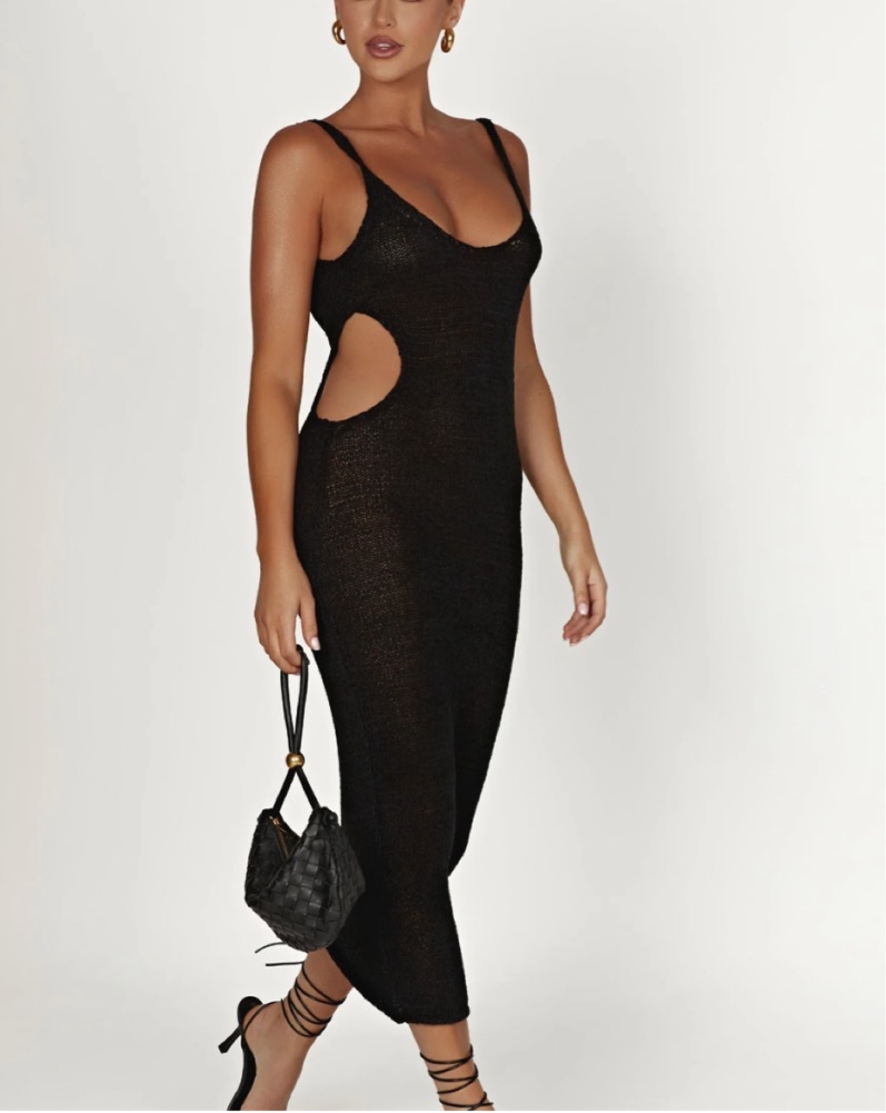 MESHKI midi knit dress in black, so comfortable. Please be careful w/ fabric.