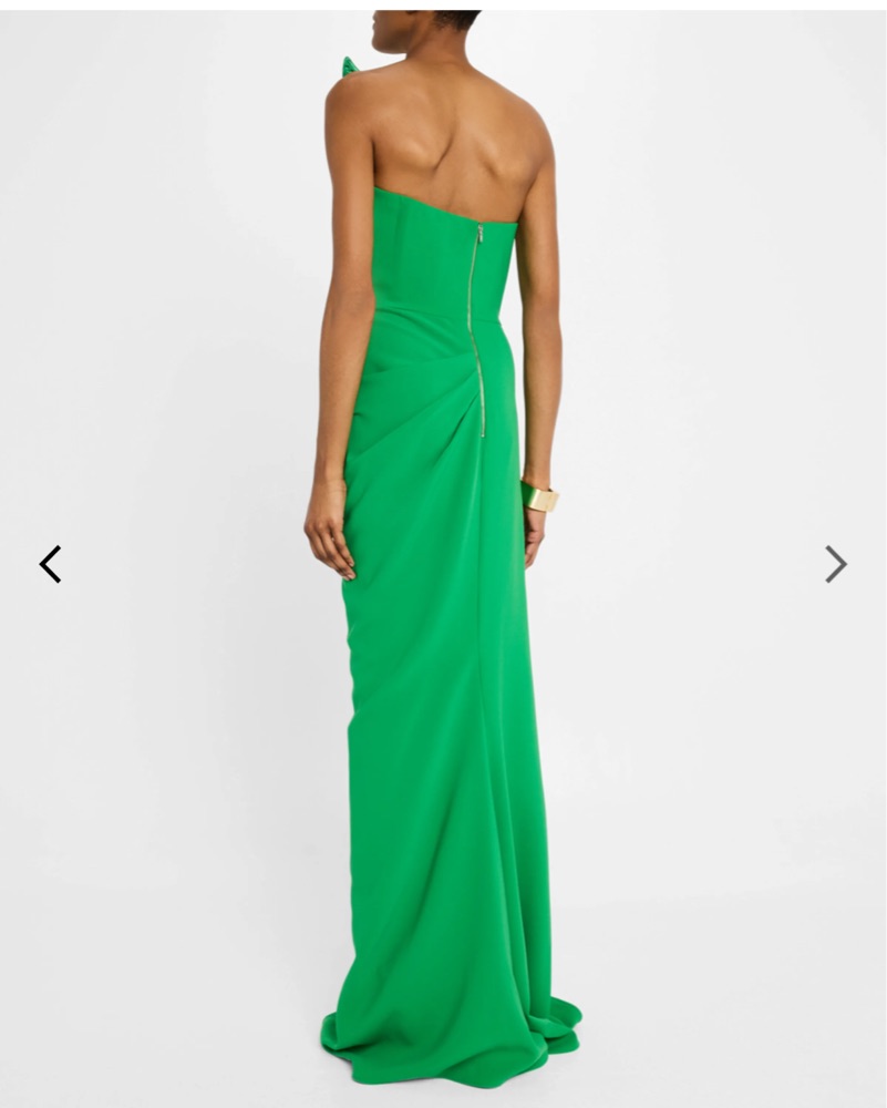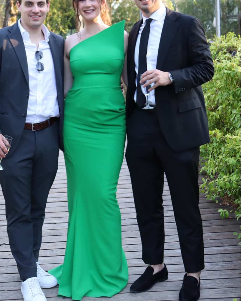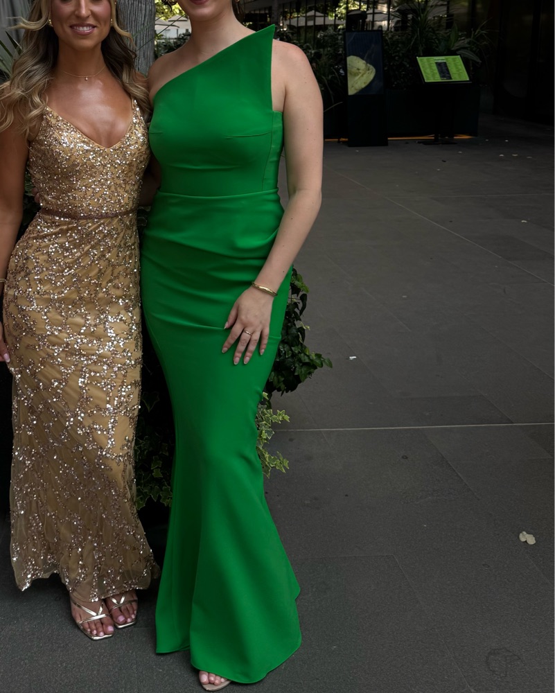 Stunning green gown with built in corset, ruching at the waist and statement pointed neckline. I got endless compliments in this dress, so comfortable and flattering