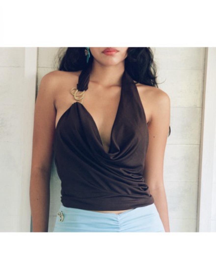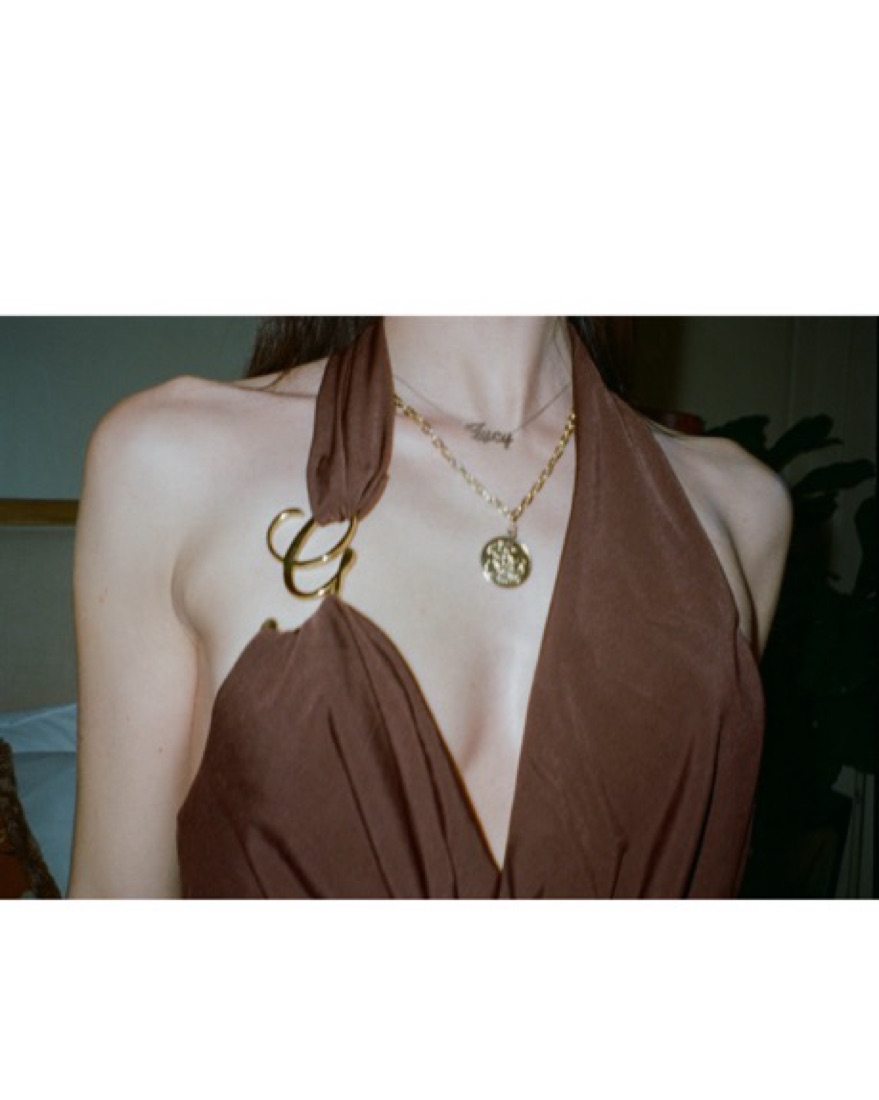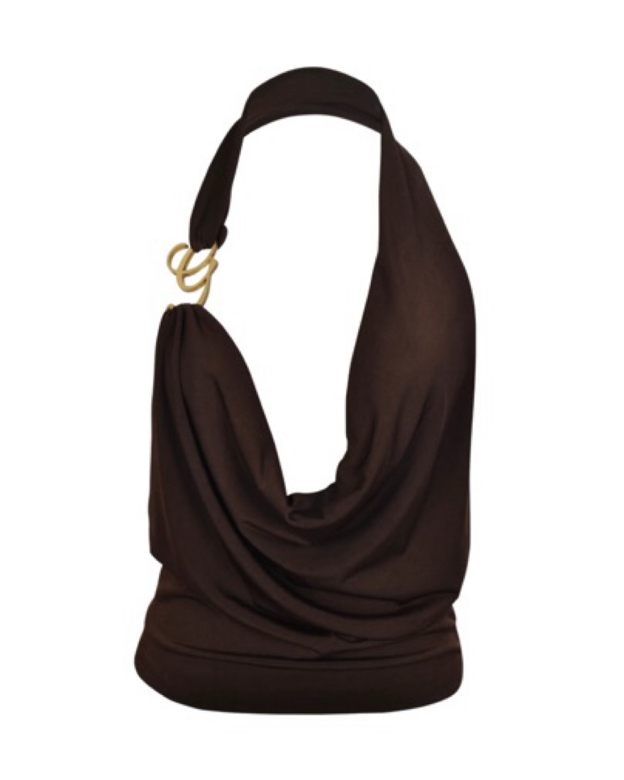 Thick halter straps with decorative G embellishment for standout style