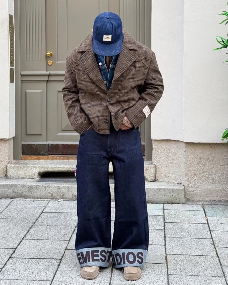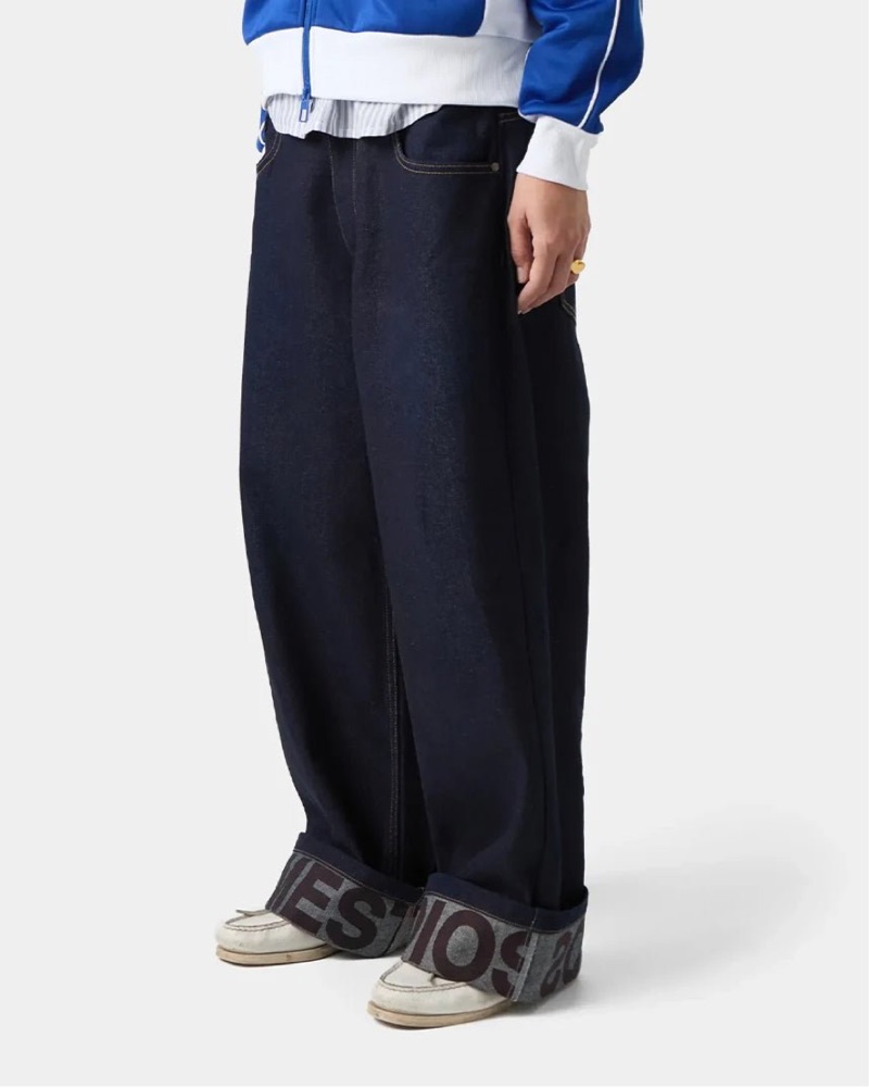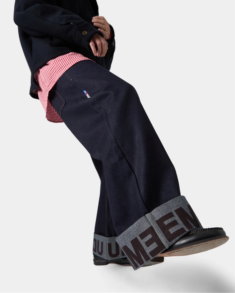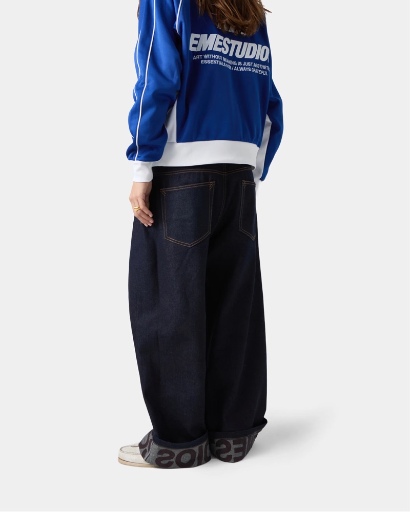 Dark wash wide leg jeans with Eme Studios logo cuffs🤩 Love these, always get compliments wearing them. For reference, I’m a size small 2/4 but I like these low rise so they fit like a 26/27 waist