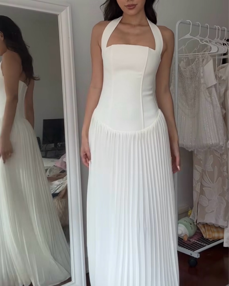 Meshki Stacie Pleated Halter Maxi Dress