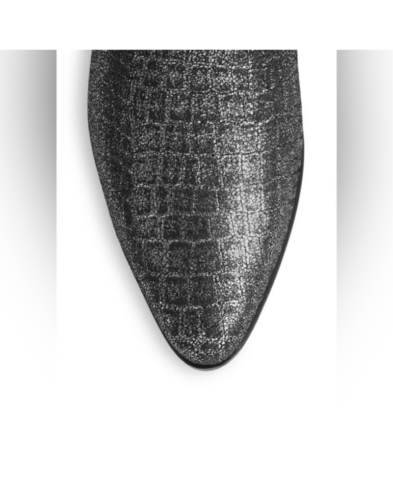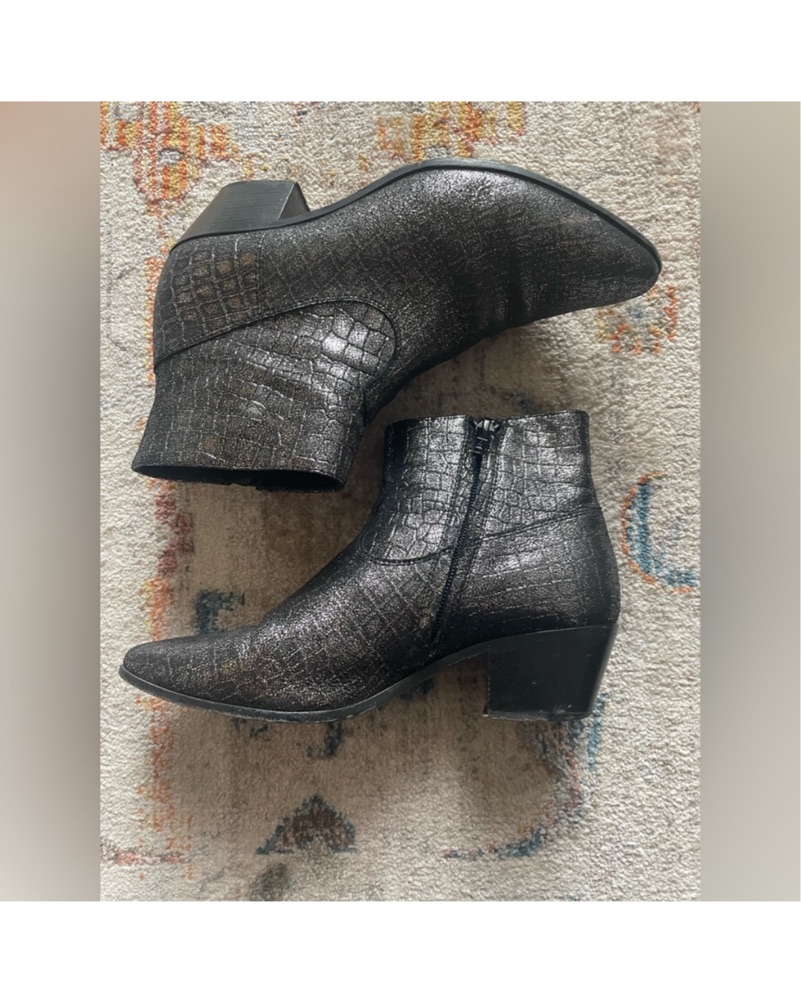 These stylish silver crocodile booties are in size 36.5 European (6.5 US) and are great for the holidays!