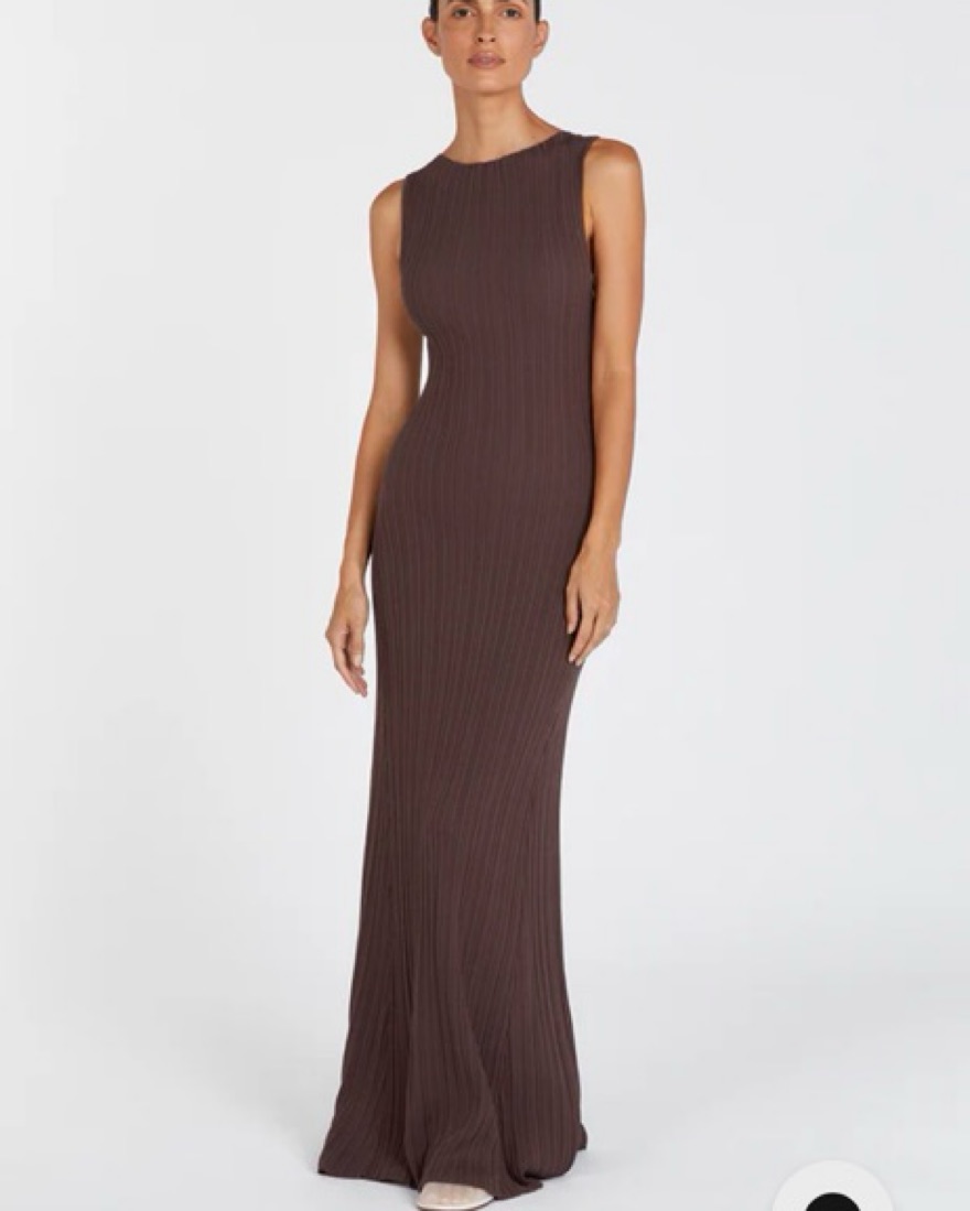 Ivy Coffee Sleeveless Midi Dress. I am 5’4, 24-25 waist, and this fits me more like a maxi dress!