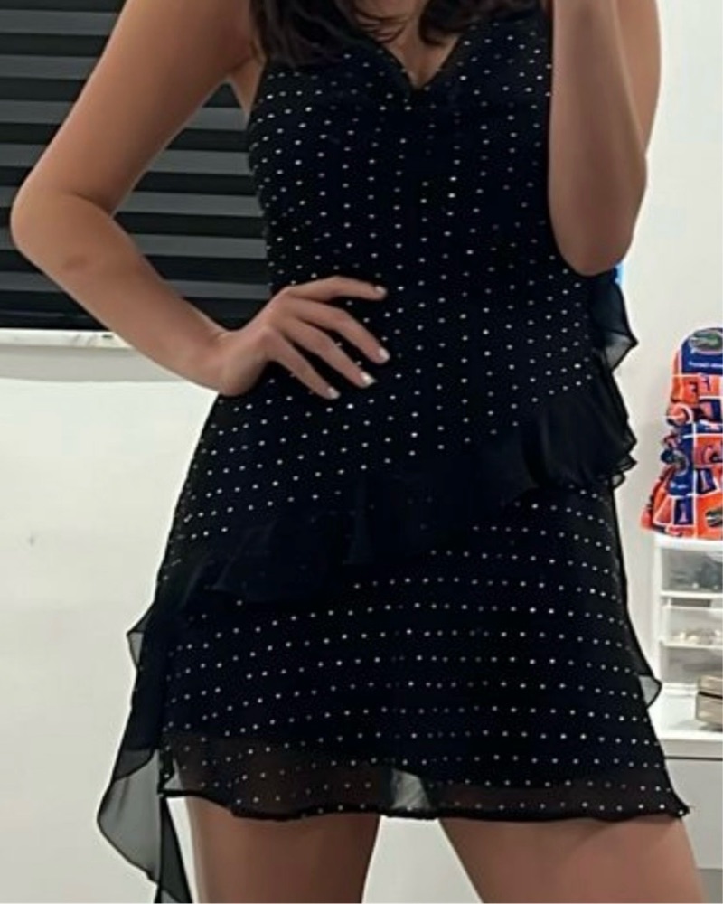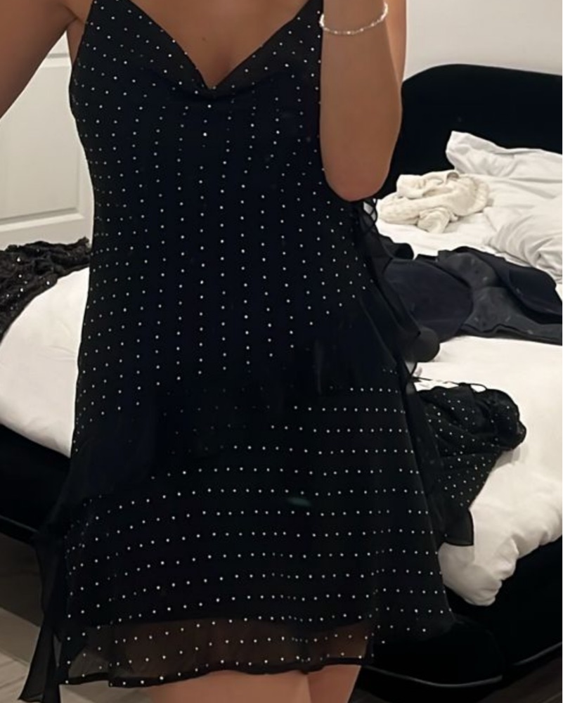 Stunning black dress with silver sparkles. Perfect for a night out, a special occasion, or New Year Eve! Extremely sexy and flattering.