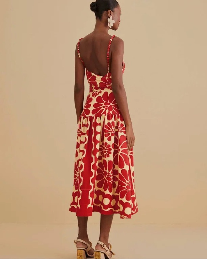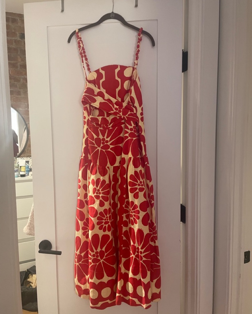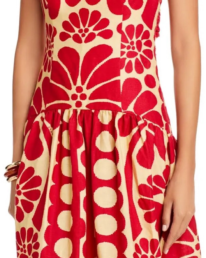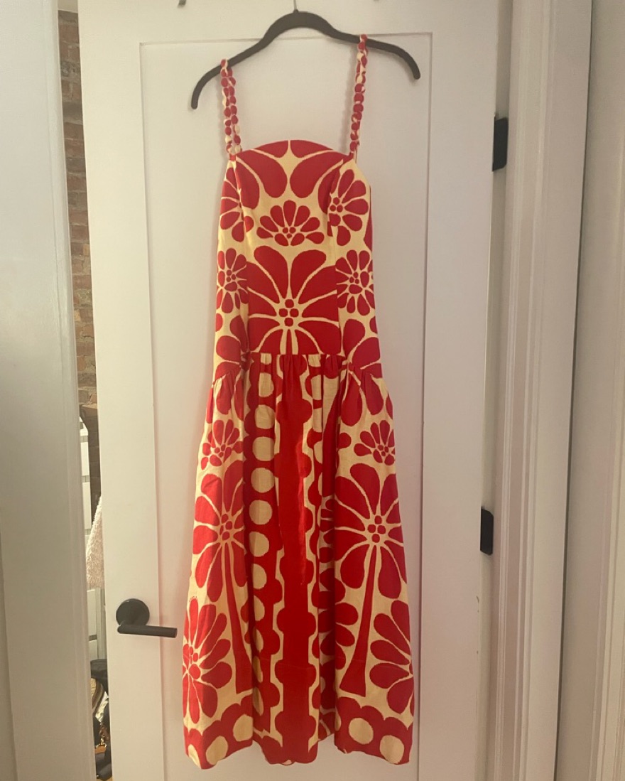 Red Palermo Printed Linen Farm Rio midi dress, size M.