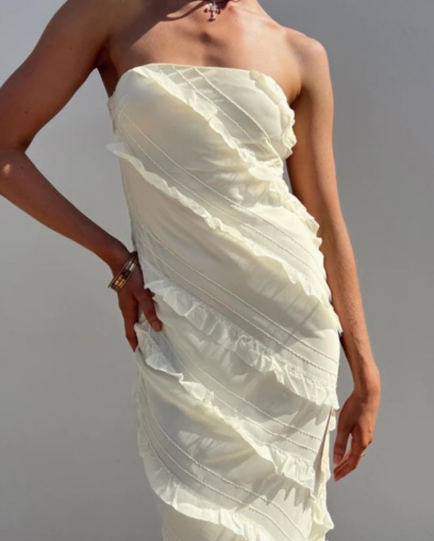 Princess Polly Strapless Ruffle Dress by Princess Polly - Pickle