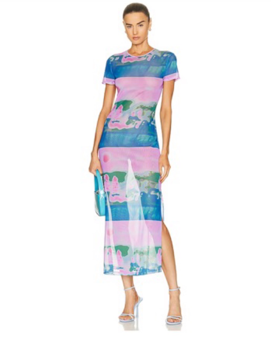 Pull-on styling Mesh fabric with side seam slit Garment is made with a semi-sheer fabric, undergarments can show through