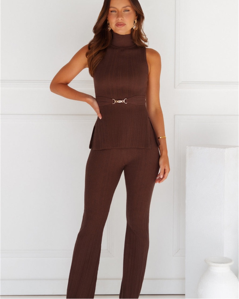 set! size xs top and bottom. super comfy and flattering could fit xs-s as there is stretch. ribbed material, mock neck, with gold hardware belt detail on front. dupe for meshki tanya/chiara set.