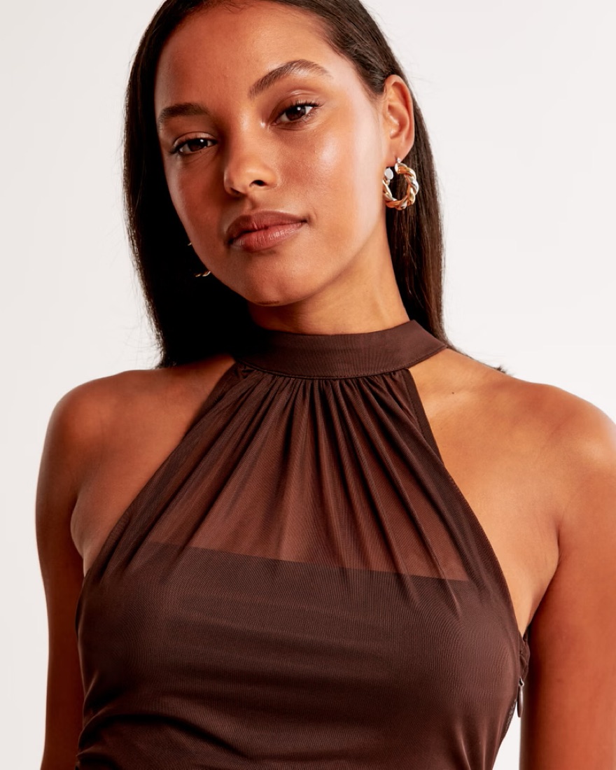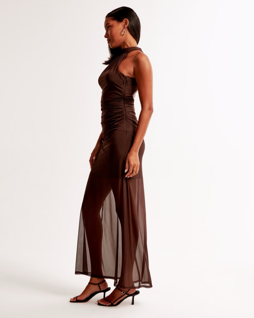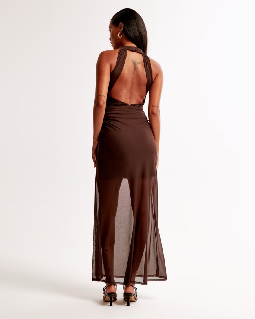 Vol. 28 Brown Sheer Halter Maxi Dress