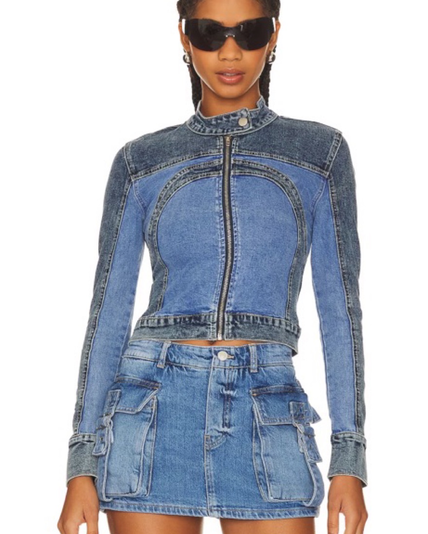 Superdown from Revolve Quinn Moto Denim Jacket Size Medium