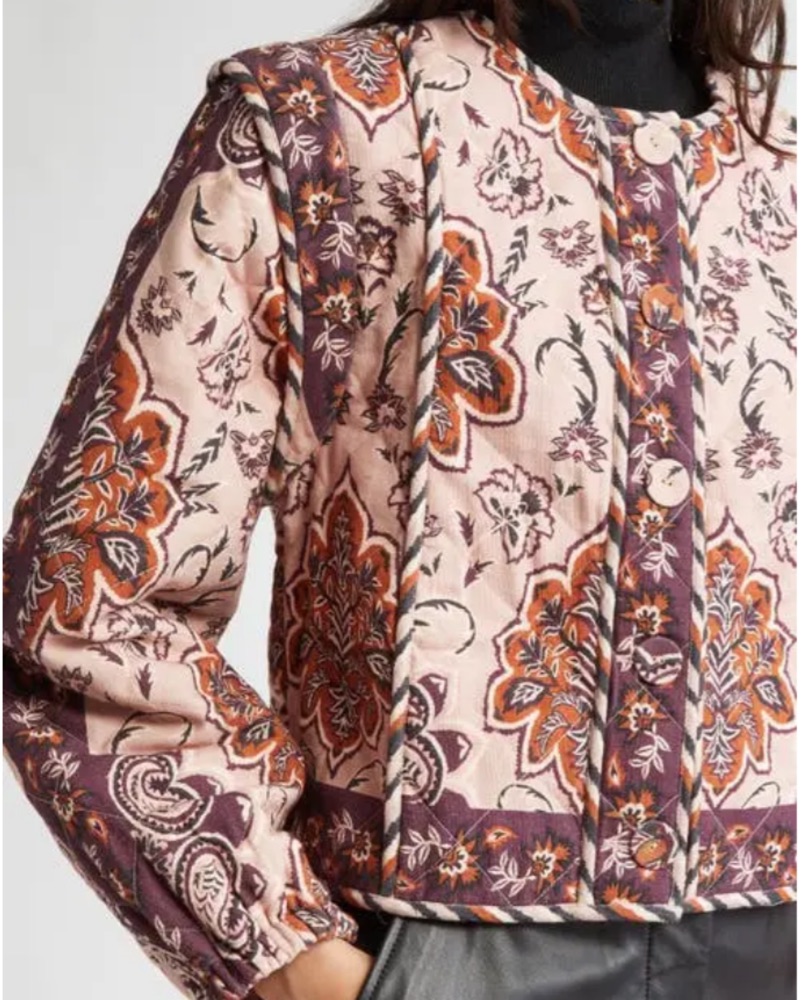 Pink Farm Rio quilted paisley and floral soft jacket. Perfect for spring