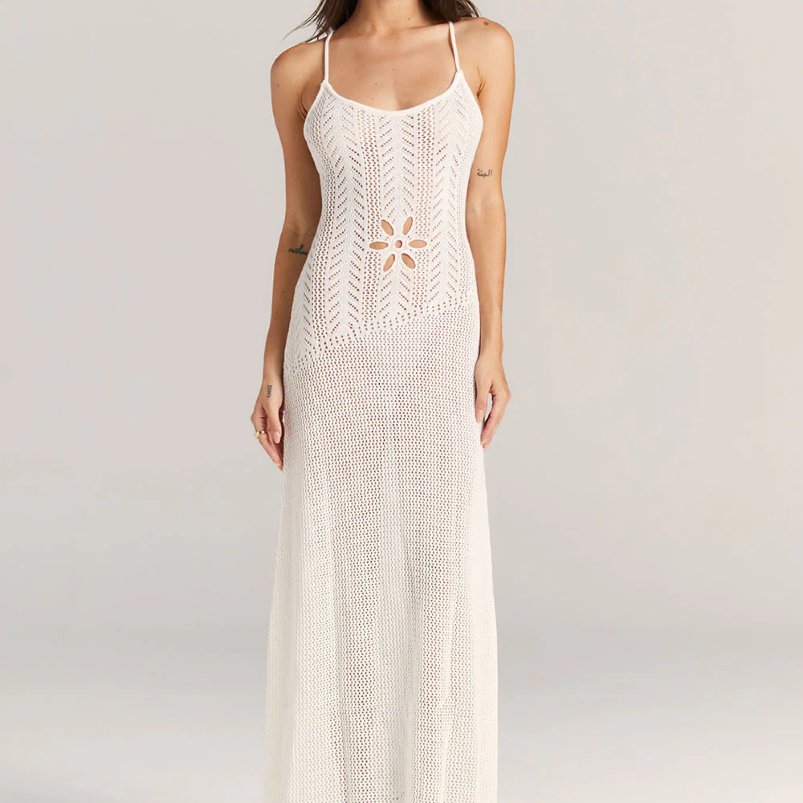 Our Dahlia Dress is a fully fashioned knitwear dress with a flower cut out placed over the belly button. The back is open and ties at the centre back so you can adjust how the front neckline is sitting based on your preference. Perfect summer or vacation dress, can be worn as a cover up or solo