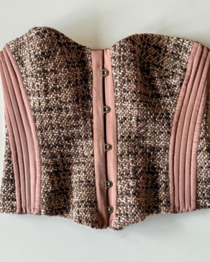 Fall/ Winter 2005 collection, constructed from pink satin and tweed. Makes the ladies look so great - fits full B up to D cup AS SEEN ON ALEX COOPER IN BROWN