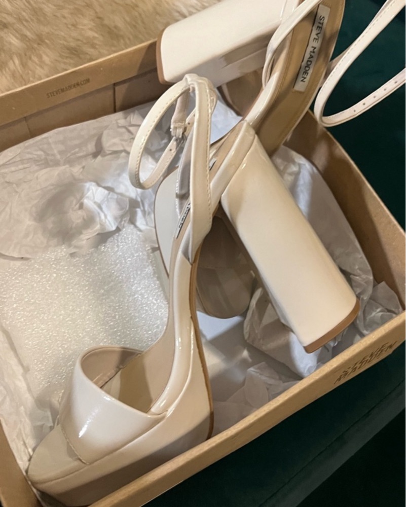 4.75 inch heel height 1.25 inch platform Size 7.5 color: bone patent