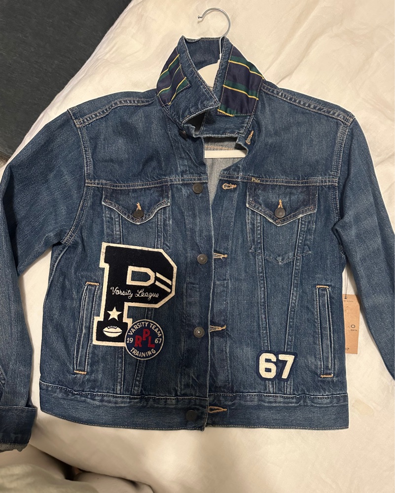 Varsity League and 67 Front patches. Spread collar. Buttoned placket. Machine wash. Wash: Selosia. 70% cotton, 30% lyocell. Long sleeves with buttoned barrel cuffs.