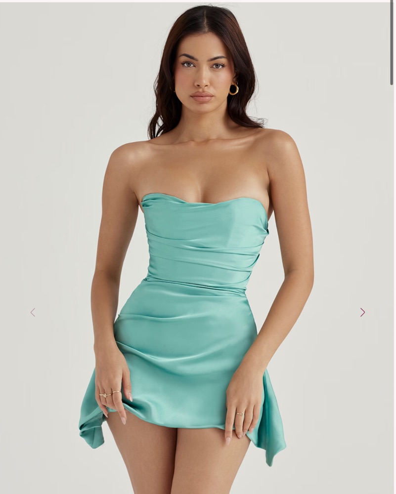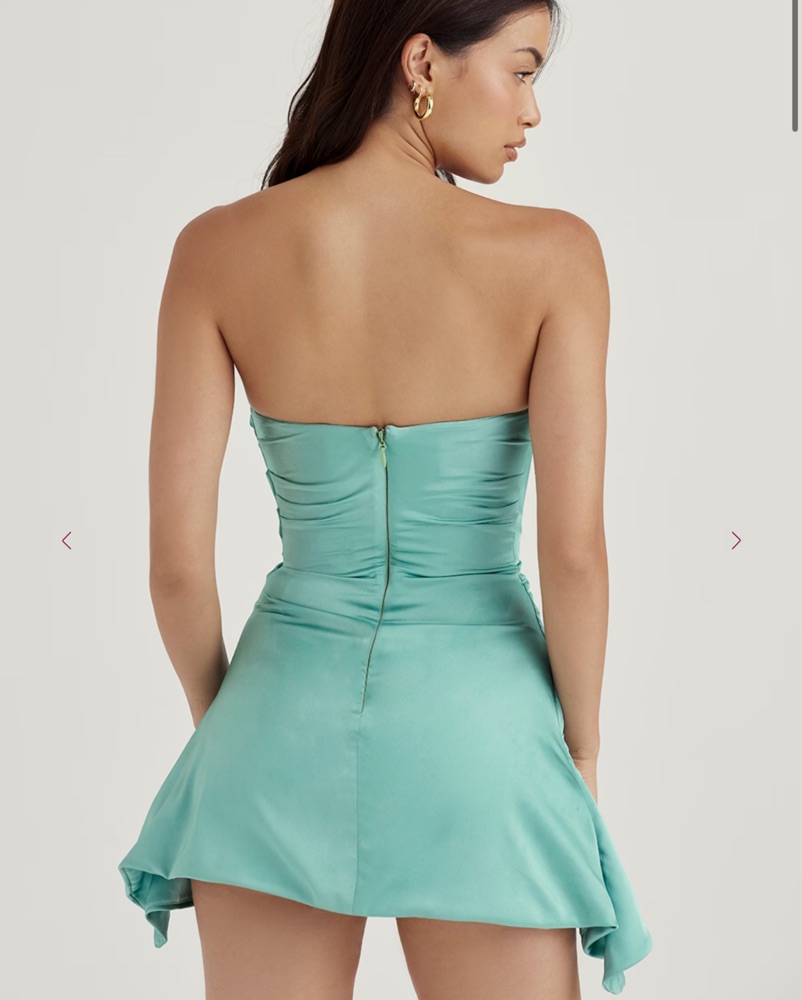 House of Cb jasmine Jade teal Mini draped strapless . Corset is so flattering! Zero stretch but snatches you in! Altered a bit shorter for my height 5’3”. Measurements upon request :) DRY CLEAN ONLY! runs small