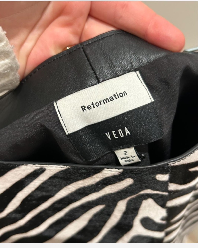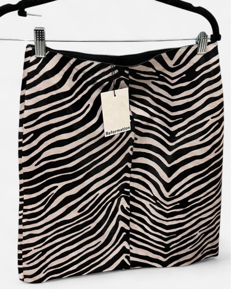 Reformation Veda Barrow Leather Low Waist Skirt Brand new, never worn with tags! Zebra haircalf