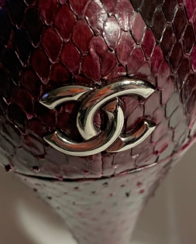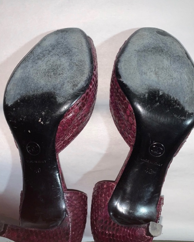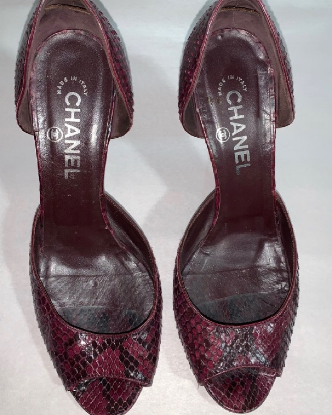 CHANEL size 40 burgundy PYTHON pumps