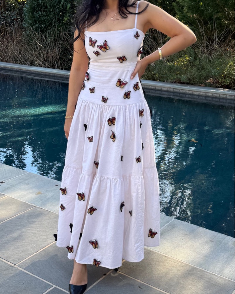 Agua Bendita Butterfly Linen Maxi Dress by Agua by Agua Bendita - Pickle