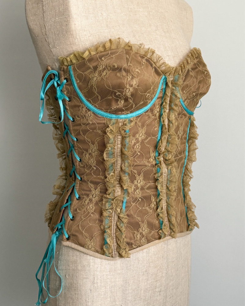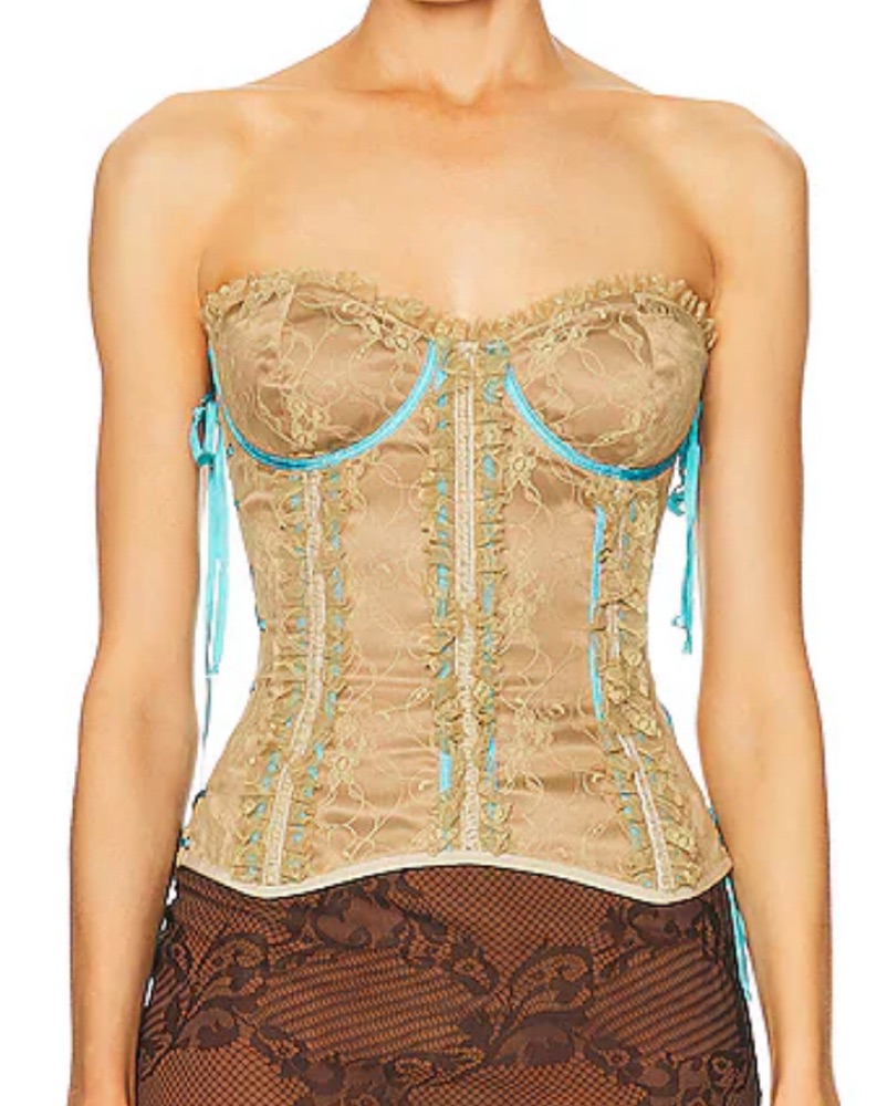 Vintage nude corset with light blue lace. Most amazing vintage D&G statement piece!!