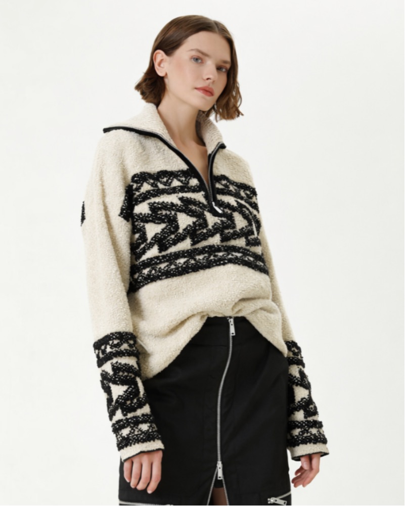 Very cool and cozy stylish sweater quarter zip black white cardigan knit designer, it’s size xs but fits oversize small medium