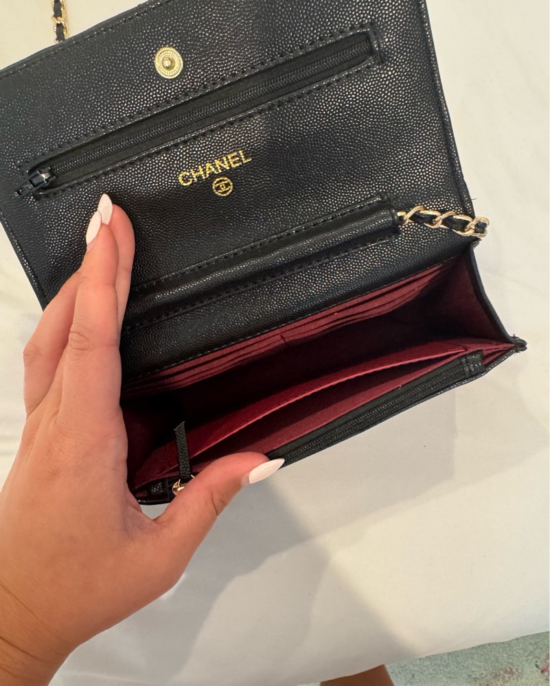 Iconic Chanel quilted leather crossbody bag. Red interior with card slots