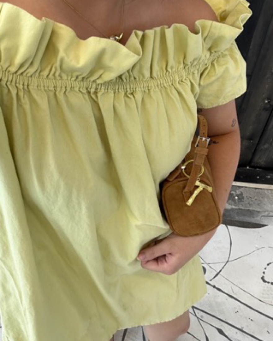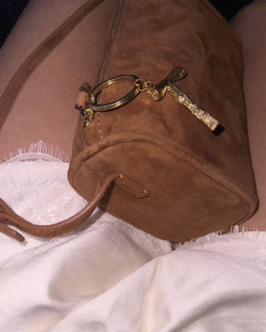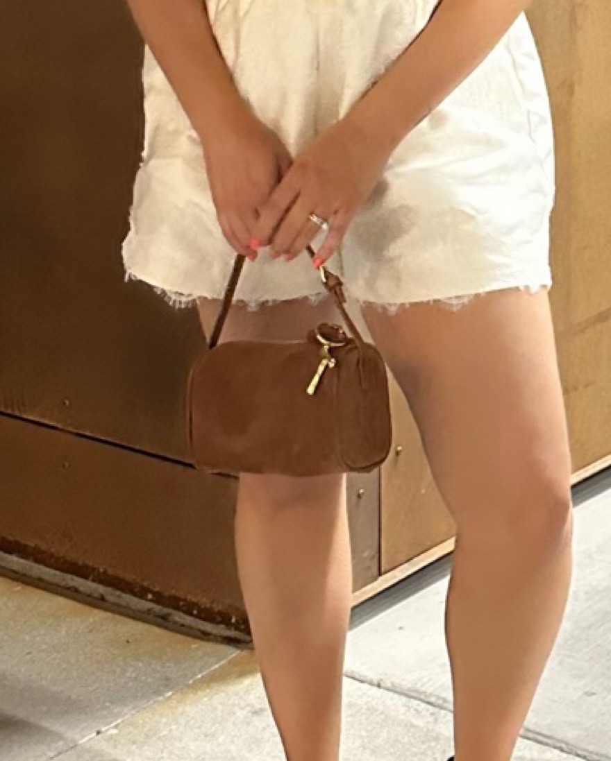 The sweetest suede bag. Fits a lot surprisingly. Very chic for fall.