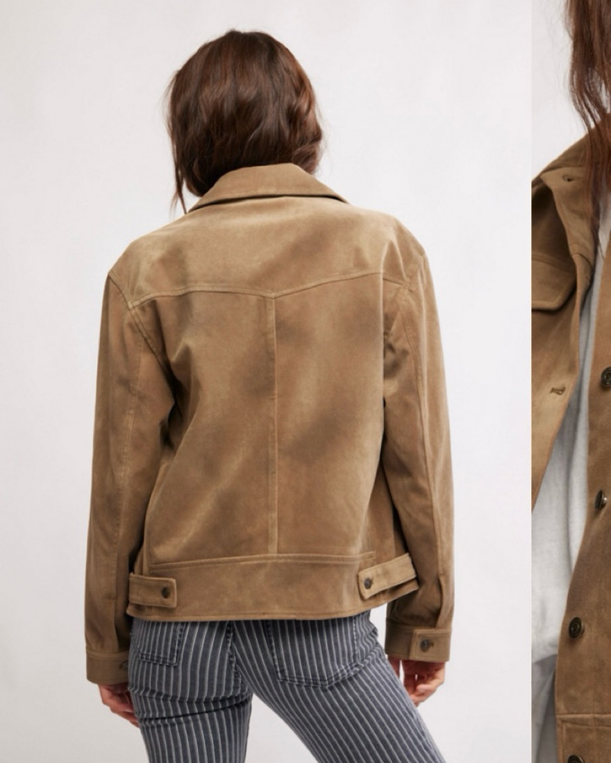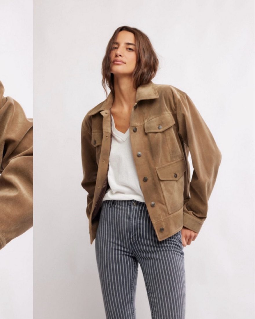Brown oversized faux leather jacket with lots of pockets from Free People and barely worn. Looks and feels more suede than leather. Size medium